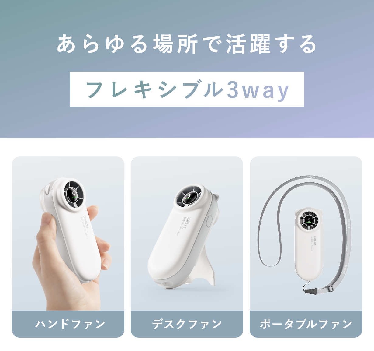 軽量でスリムなデザインのため、バッグやポケットにもすっぽり収まり、どこへでも手軽に持ち運ぶことができます。これまでのポータブルファンよりもさらにコンパクトになりながらしっかりとした風量を実現し、暑い日の相棒として活躍してくれます。