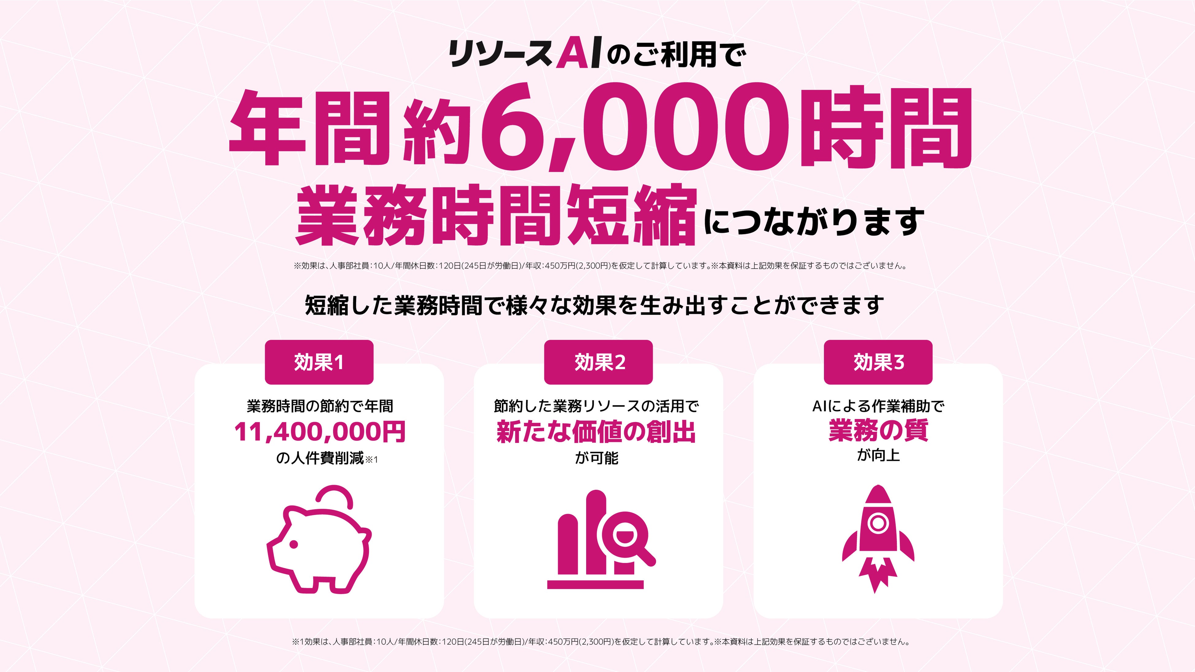 また、AIを活用することで、重要なリソースを節約することが可能になります。AIをビジネスパートナーとして活用することにより、日々の業務をAIに任せることができ、重要な仕事に専念できます。これにより生産性の向上に貢献いたします。