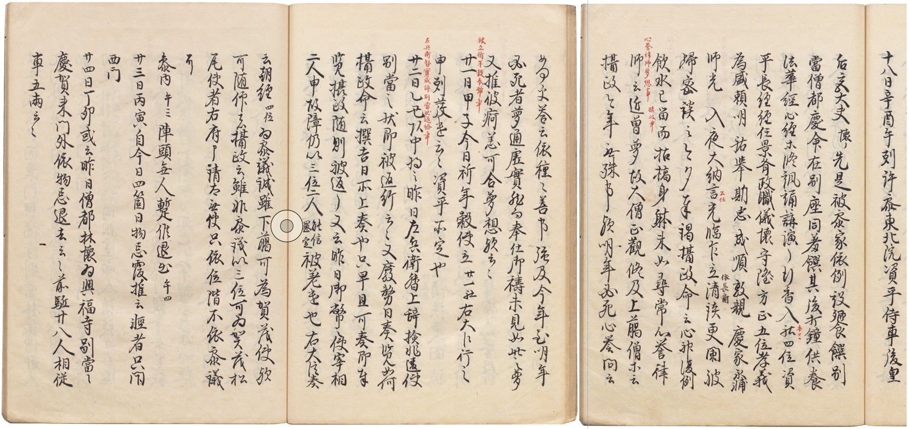 『小右記』が藤原道長の死の夢について「夢は虚実あるもの」と述べている箇所を展示し、記主の藤原実資が夢に対し客観的な見方を示していたことを紹介します。