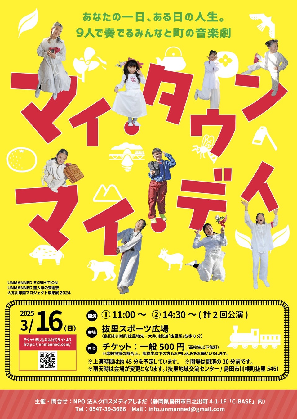 静岡県大井川流域にて2018年より実施してきた「UNMANNED無人駅の芸術祭/大井川」開催エリアにおいて、2024年度に通年にて実施をした「地域×アート」プロジェクトの成果発表展を開催する。アーティストが3つの異なる視点(「地域農業と芸術」「国際関係と芸術」「企業活動と芸術」)から地域と混ざり合うAIR事業(アーティスト・イン・レジデンスプログラム)を展開した。3月16日(日)まで開催。