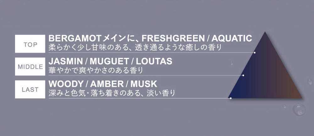 柔らかく少し甘味のある、透き通るような癒しの香り。
