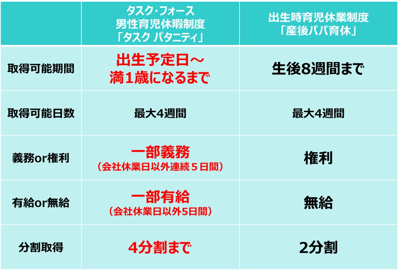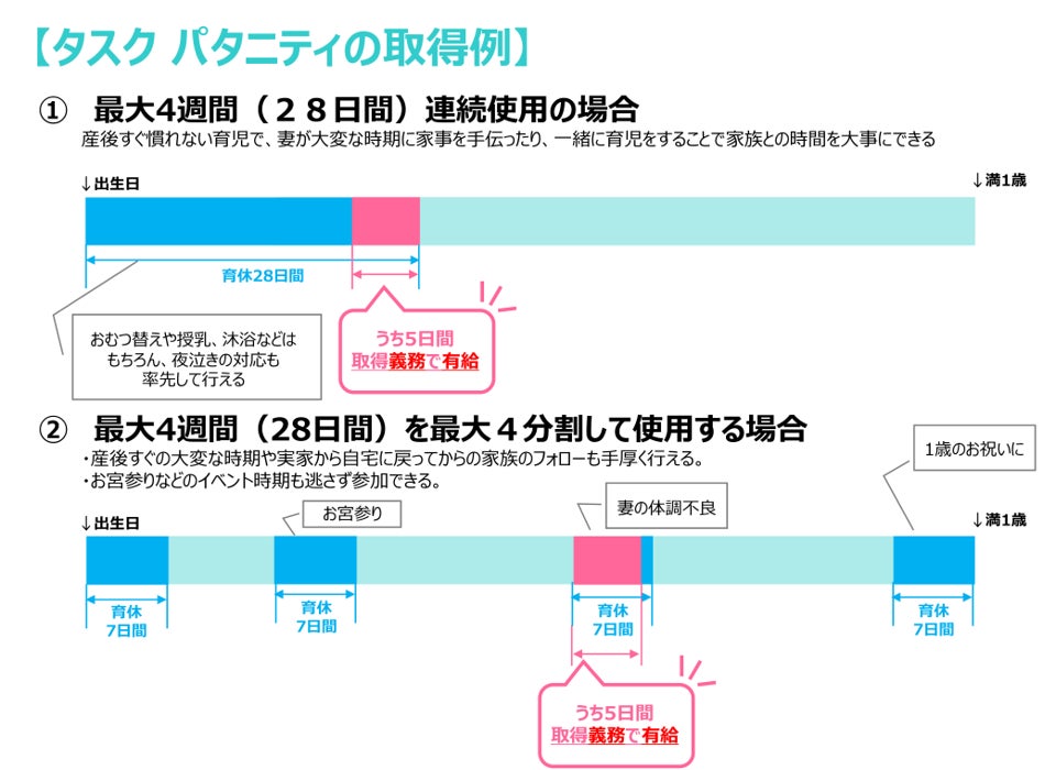 ※「パタニティ(paternity)」とは、男性向けの育児休暇制度もさす言葉。