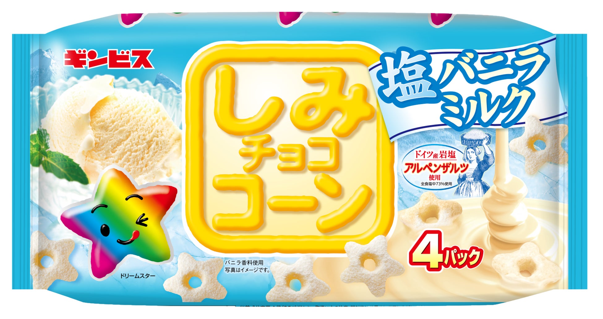 株式会社ギンビス(本社:東京都中央区、代表取締役社長:宮本 周治)は、昨年好評だった「しみチョココーン塩バニラミルク 4P」をパッケージリニューアルし、2024年5月20日(月)より発売しました。
