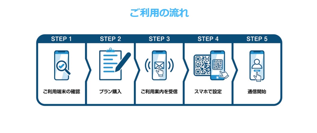 eSIMの設定の大まかな流れは5ステップ。4〜5分程度で簡単にできます。