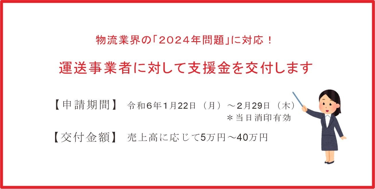 (注)「交付対象事業」とは、一般貨物自動車運送事業、特定貨物自動車運送事業、貨物軽自動車運送事業です。