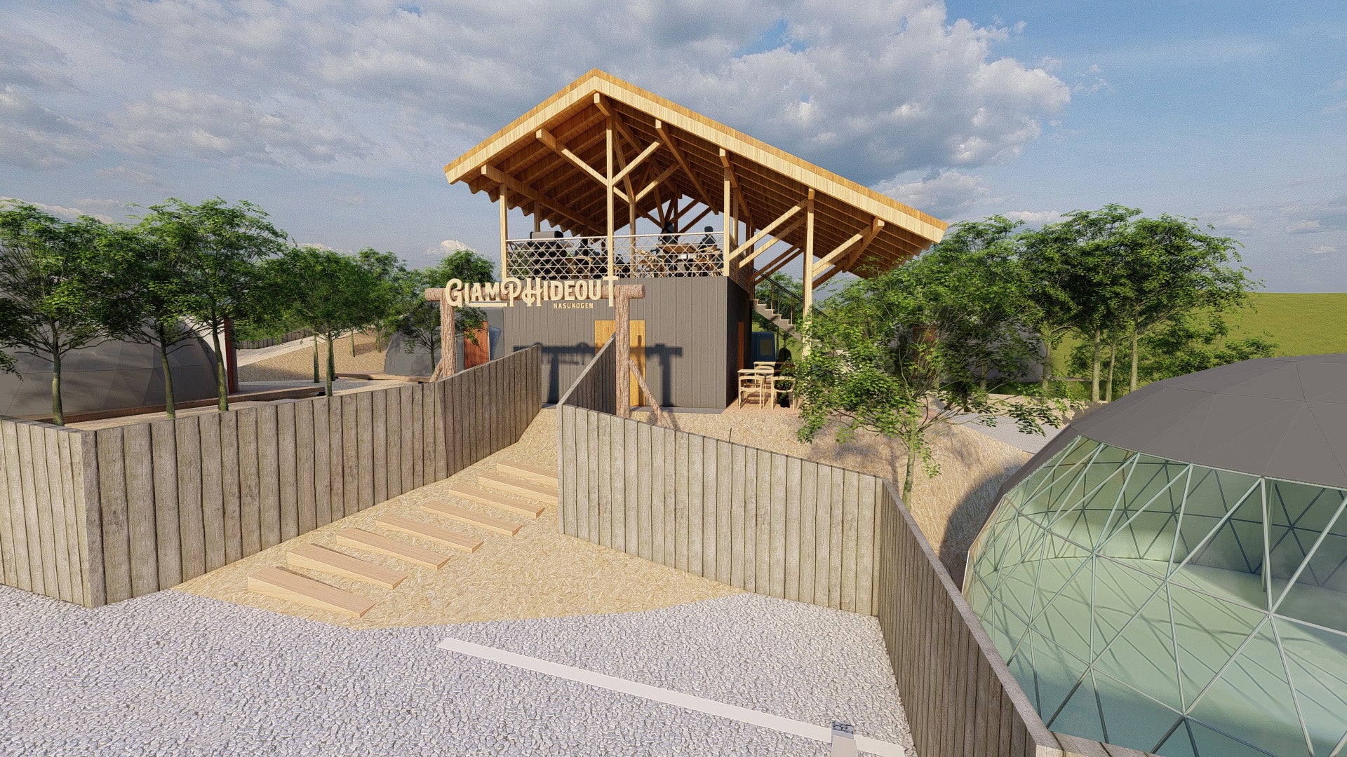 ツリーハウスがモチーフのメイン棟を中心に4つの客室ドームへと繋がります。ハイドアウトは「隠れ家」のこと。プライベート感を損なうことなく、大自然を満喫できるように設計されました。