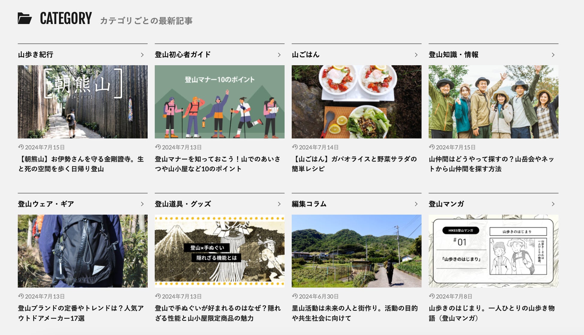 「HIKES(ハイクス)」では、リニューアルを機に新たなコンテンツを多数追加しました。ユーザーの皆様が山歩きと暮らしをより楽しめるよう、多様な情報を提供しています。