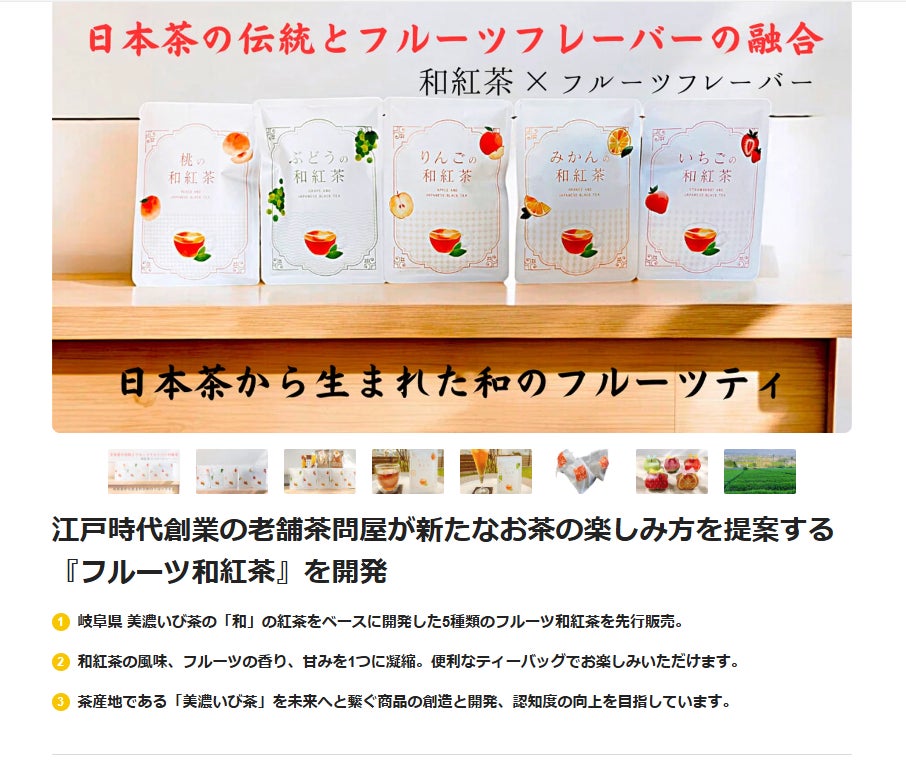 このプロジェクトは、地元の風土と味わいを楽しみながら新しい形の和紅茶を提供して、岐阜県の茶業を未来へ繋ぐ試みです。
