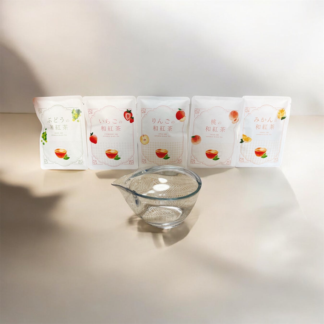 フルーツ和紅茶 5種類と透明急須「チャスタ」のセットです。