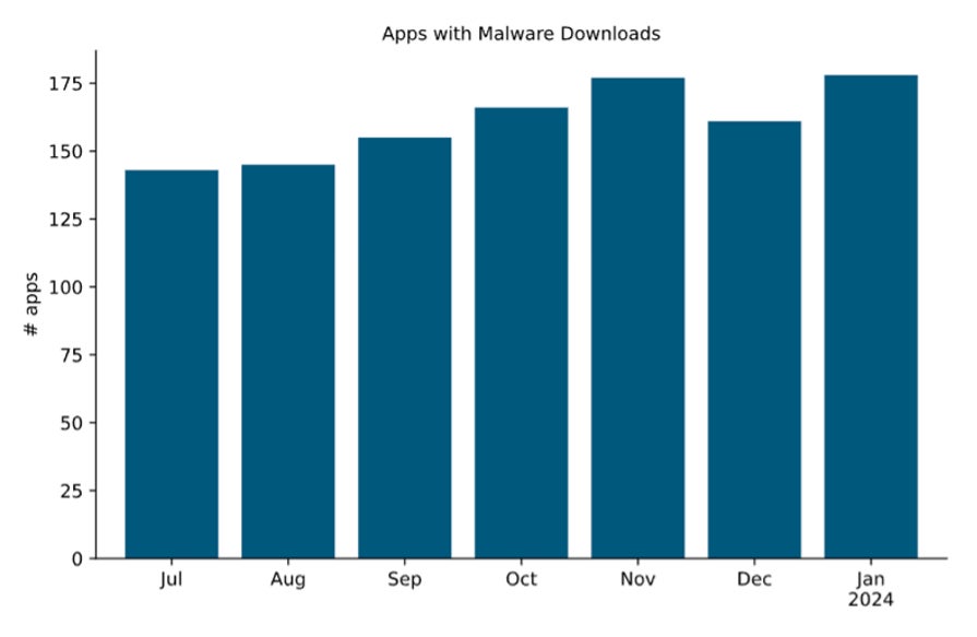 1月は数多くのクラウドアプリがマルウェアのダウンロード源となり、その数は178に上りました。