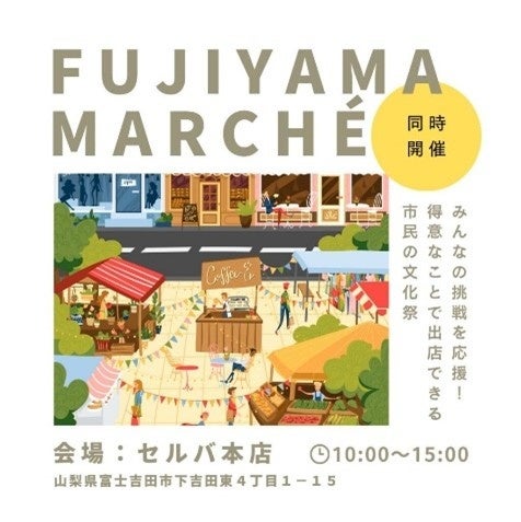 趣旨 :地域の方々のチャレンジを応援する「ふじやまマルシェ」を同時開催します!テーマは「市民の文化祭」自分が好きなことや得意なことで、何か貢献がしたい!という熱意あるチャレンジャーたちが集まります。高校生も参戦予定!