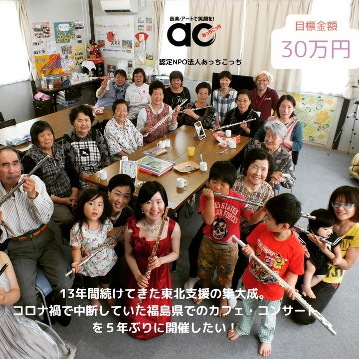 芸術による社会貢献を行う「認定NPO法人あっちこっち」の活動は、2011年の東日本大震災の際に始まりました。被災地での無料のカフェ・コンサートと手作りのお菓子を提供するイベントを開催したのがきっかけです。2011年夏に宮城県の七ヶ浜町で始め、石巻市、南三陸町、2013年からは福島県、2017年からは熊本県の被災地でも毎月開催し続けてきました。2020年からは新型コロナウイルスの影響で中断していましたが、今年3月にクラウドファンディングの支援を募り、福島県内の3カ所で再び開催することができました。