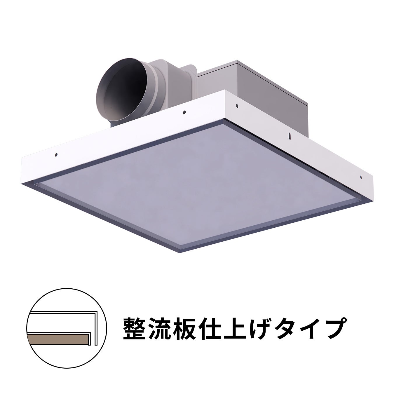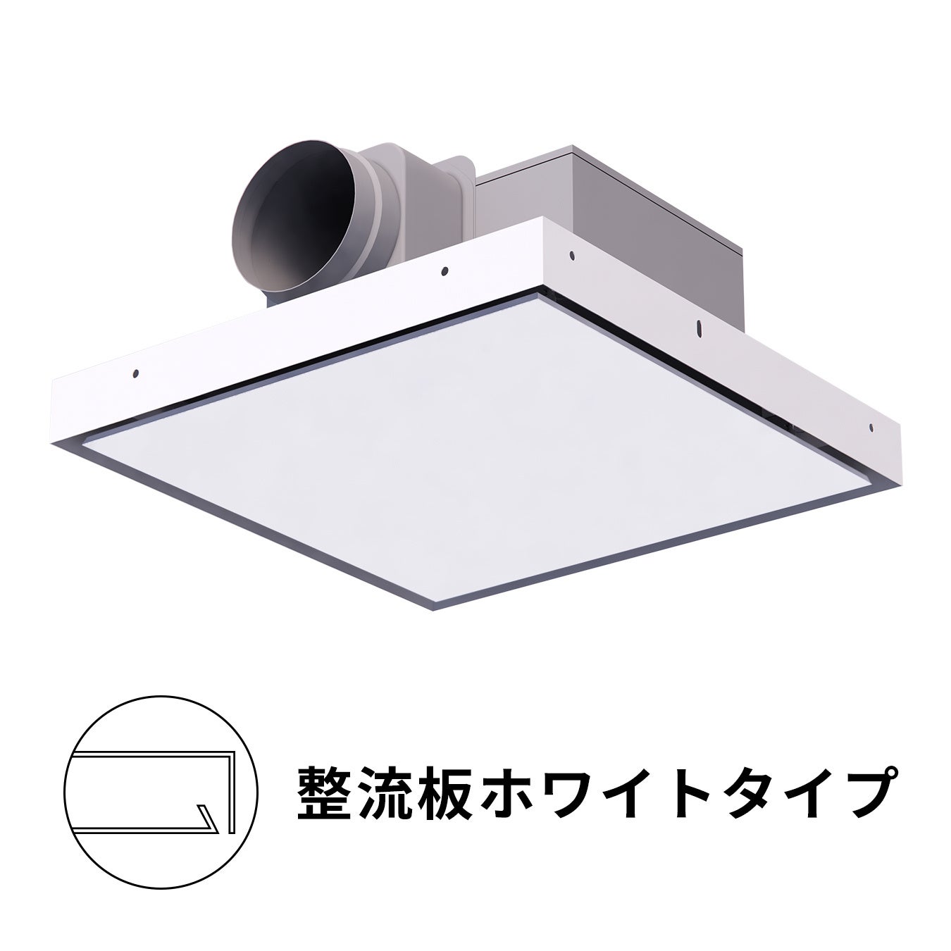 天井の仕上げによって、カバーは2種類。白い天井に合わせられる「整流板ホワイトタイプ」と、天井面に合わせて仕上げを変えられる「整流板仕上げタイプ」から選択可能です。