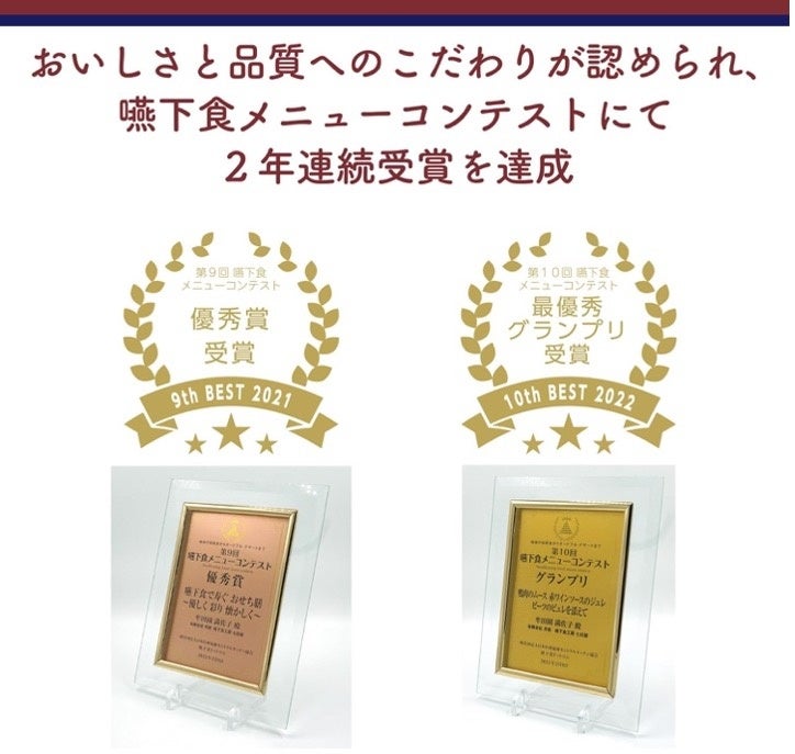 「しあわせごはん」は、嚥下食ドットコム・嚥下食メニューコンテストで2年連続受賞しています。
