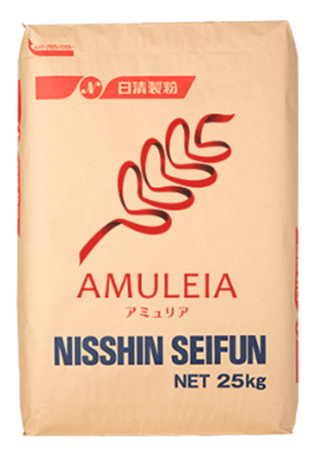 日清製粉株式会社が開発・販売する高食物繊維小麦粉「アミュリア」は、高食物繊維小麦を原料に使用した食物繊維が豊富*注な業務用小麦粉。普段の食事と変わらないおいしさでありながら、食物繊維を豊富に含んだ食品づくりを実現する、日本で唯一の商品です。パンや、うどん・パスタ・ラーメンなどの麺類、お菓子まで幅広く活用できるのが特徴で、「アミュリア」で作られた食品を毎日の食卓に取り入れていただくことで、ご家族皆様でおいしくすこやかな毎日を過ごしていただけます。