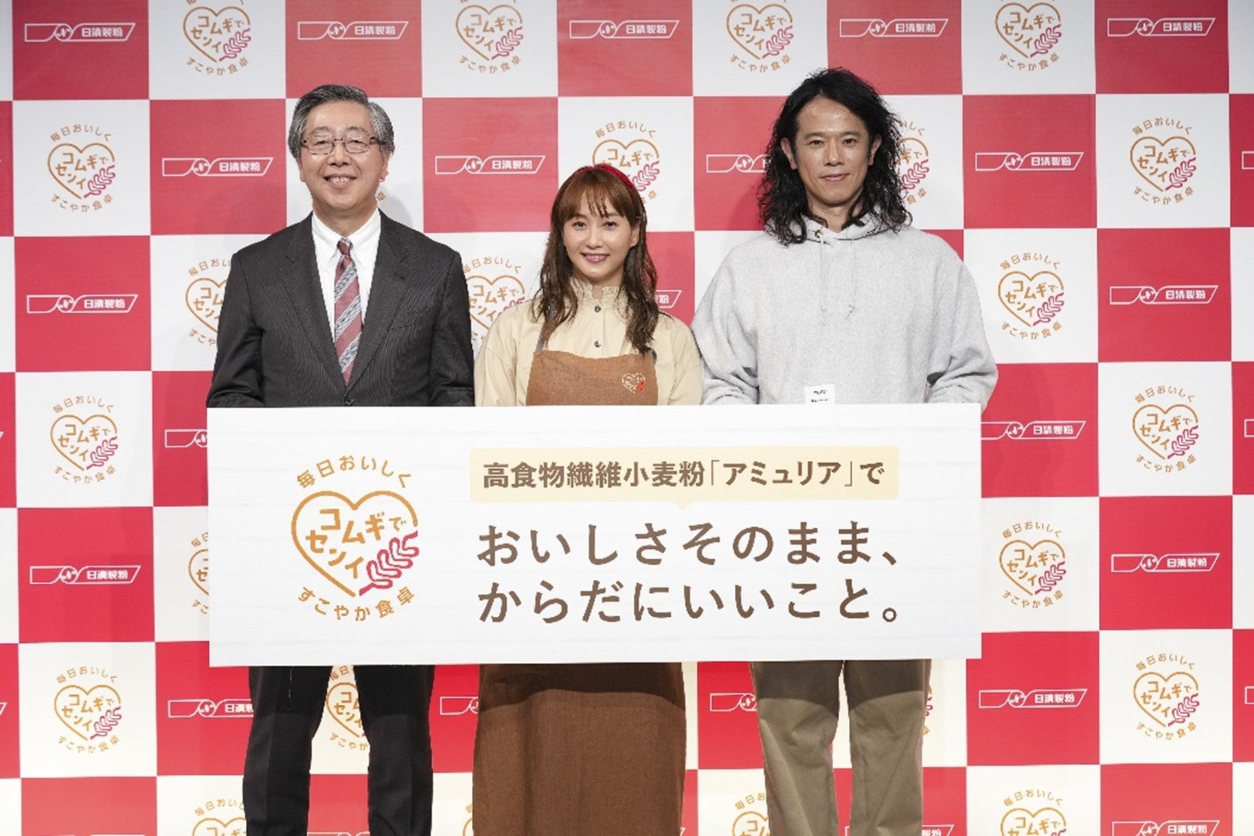 今回の「高食物繊維小麦粉『アミュリア』アンバサダー就任式」に登壇した日清製粉株式会社取締役社長の山田貴夫は、この「アミュリア」について「おいしさと健康を両立した小麦粉を生み出すため試行錯誤を重ね、消費者の皆様がおいしく、無理せず、食物繊維を摂取することをサポートできる小麦粉が誕生しました。“おいしい”の先に健康がある世界の実現を目指しています。」と紹介。藤本美貴さんをブランドアンバサダーに起用した経緯については「『アミュリア』の世界観を多くの消費者の皆様に知っていただくために、日々ご家族の健康を考えた食事づくりを心掛け、お母さまとしてご活躍されている藤本美貴さんにアンバサダーに就任いただきました。藤本美貴さんとともに『アミュリア』が提供できる生活の魅力を発信していきます。」と期待を寄せています。