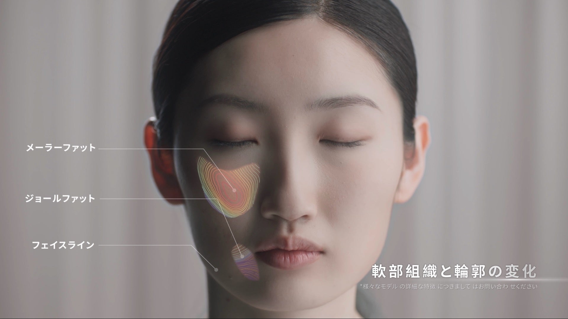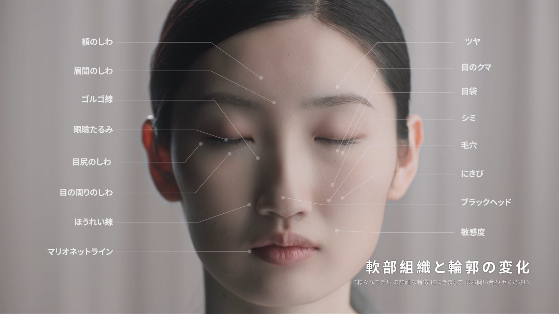 通常の肌診断機とは別に、Hadakanri PERSONAL Al専用の「パノラマAI肌診断システム _EVE-V」を導入。3D撮影が可能となり、25秒で撮影が完了します。その後、 Hadakanri PERSONAL 独自のプログラミングにより、最適解の美容成分がリコメンドされます。AIパノラマ撮影はお客さまの肌診断の精度を飛躍的に高めることができます。
