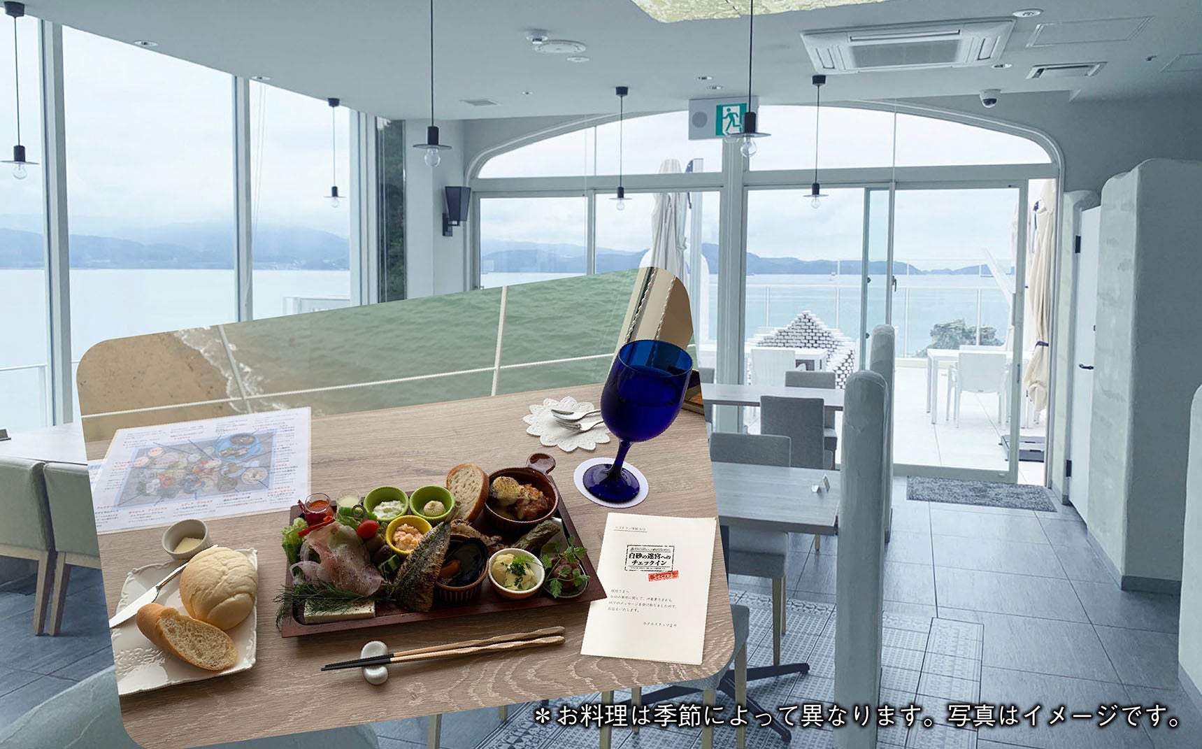 ④美しい和歌浦が一望できるレストランでのディナータイムには、ホテルスタッフからの情報提供も。