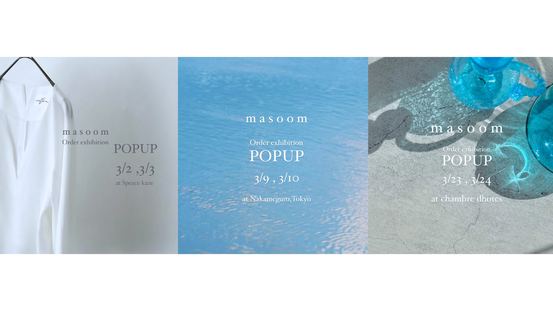 3/2(土)〜3(日)群馬県伊勢崎市、3/9(土)〜10(日)東京都中目黒、3/23(土)〜24(日)群馬県太田市にてポップアップストアを開催。3月2日よりオンラインストアにて受注販売開始。