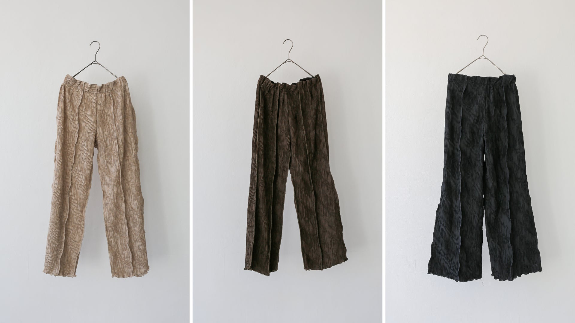 企画〜パターン作りまで一貫して手掛けるデザイナーが生み出す、うねりが独創的なジャカードパンツやプルオーバーが新発売です。