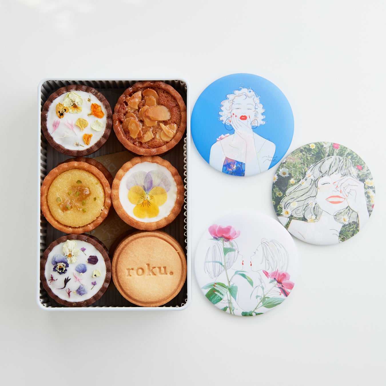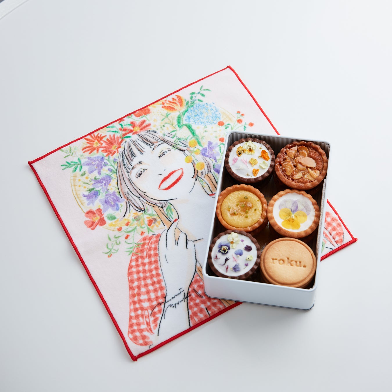 今回、タルトブランド 『roku。』で初のコラボ商品となる『小さなお花のタルト缶』をリリース致します。タッグを組んだのは、「目で見るハッピー」をコンセプトにイラストを描き、国内で評価を受けている気鋭のイラストレーター南 夏希。