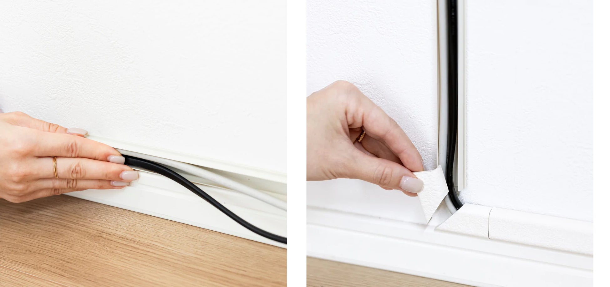 テレビ周りに限らず、室内の配線をスッキリ隠してくれる配線モール。一般的な配線モールは両面テープで設置するタイプが多いなか、石膏ピンで設置する仕様となっています。その為、外す際に壁紙が一緒に剥がれてしまう、テープの跡が残ってしまった等のストレスがなくご使用いただけます。