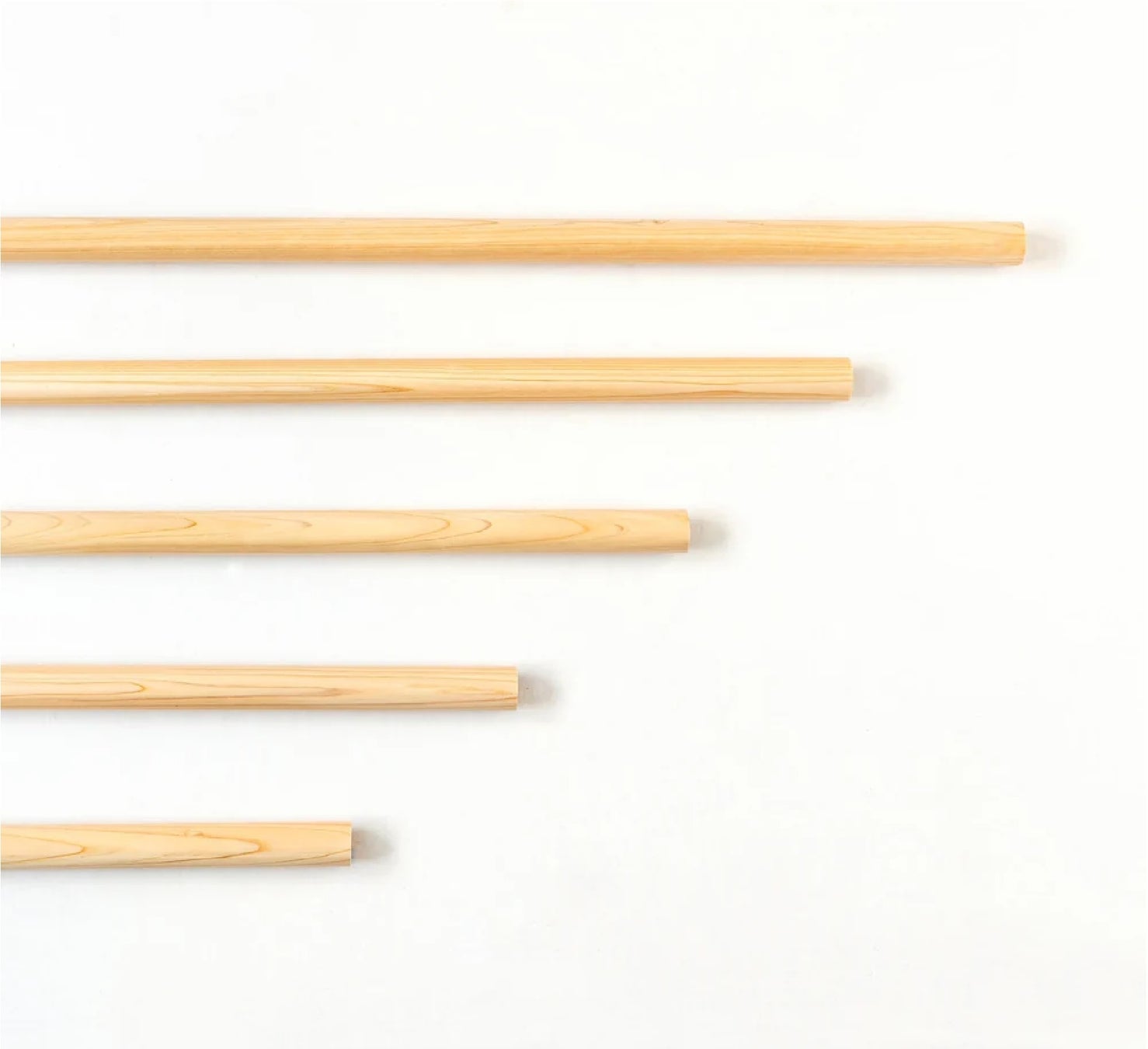 カラーは、ブラック・キャメル・アイボリーの3色から、使用する国産ヒノキの丸棒の長さも600mm~1800mmから選べます。自身のお部屋に合うものをセレクトできるのも、本ブランドの良さです。また丸棒は塗装しさらに自分好みにDIYいただくこともお勧めです。
