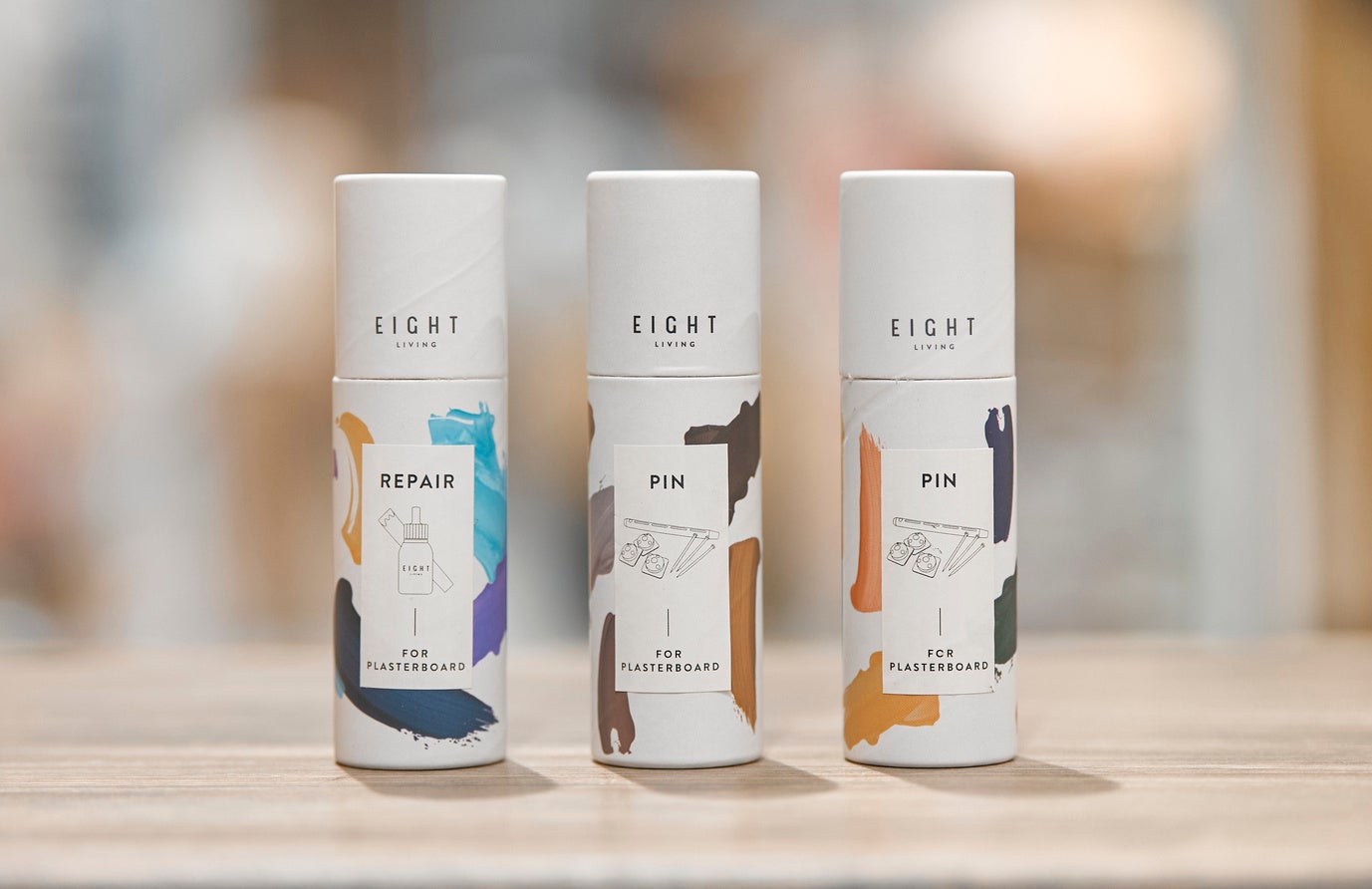 白色の壁紙に使用できるピン跡用 補修剤です。石膏ピンや画鋲・ビス跡などの原状回復に最適です。小さな穴でも気になる際は、補修材で埋めて置くと安心です。またEIGHT LIVINGのプロダクトを設置する予備用として DIYの材料として石膏ボード用クロスピンSET オリジナルピン押し棒付きのご用意もございます。