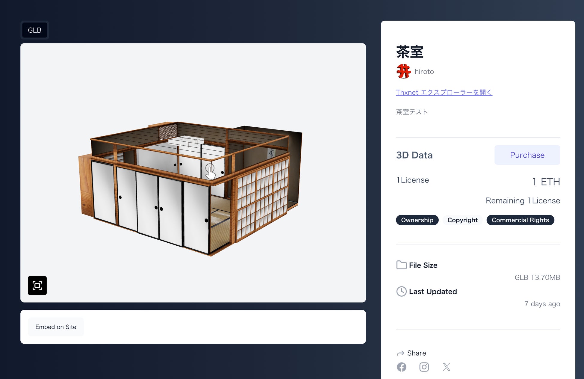 また、3Dデータ自体は今までだと作って終わりだったケースが多かった建築業界において、ブロックチェーンにアーカイブ化し、データの売買を行えるようにすることで、映像制作やゲーム制作で使われたい企業に建築デザインデータを販売することも可能になりました。