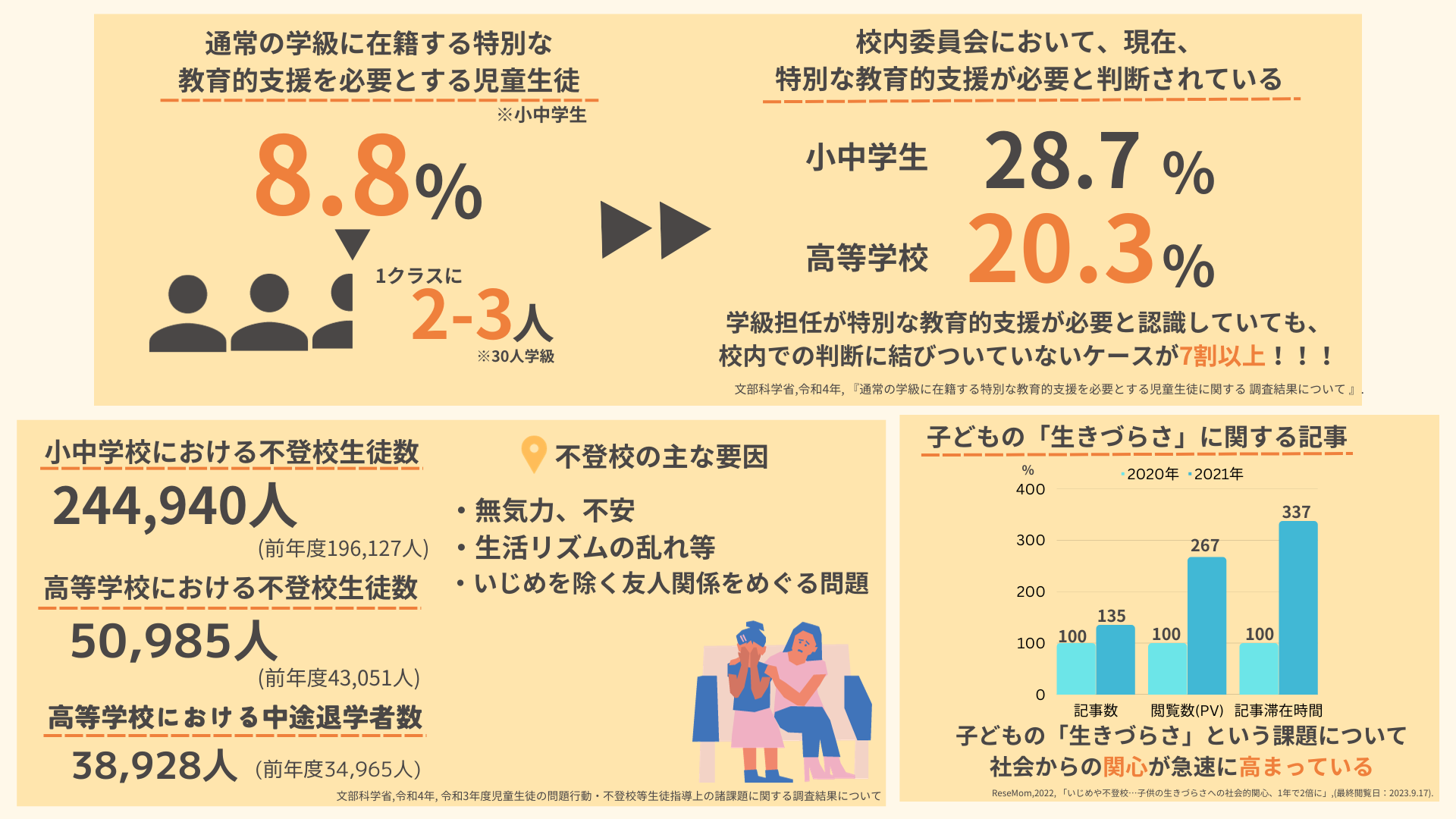 ※文部科学省 (2022). 通常の学級に在籍する特別な教育的支援を必要とする児童生徒に関する調査結果(令和4年)について.