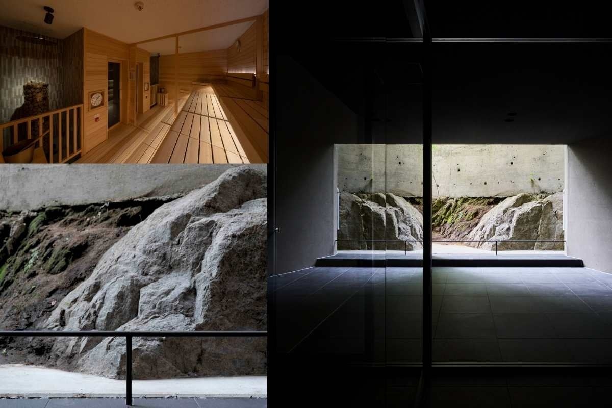 サウナヒーターは国内シェアNO.1のMETOS社。サウナストーンは遠赤外線効果が高く、耐久性の高さが魅力の「KERKESストーン」。アートな空間づくりだけでなく、サウナの品質にもこだわりました。