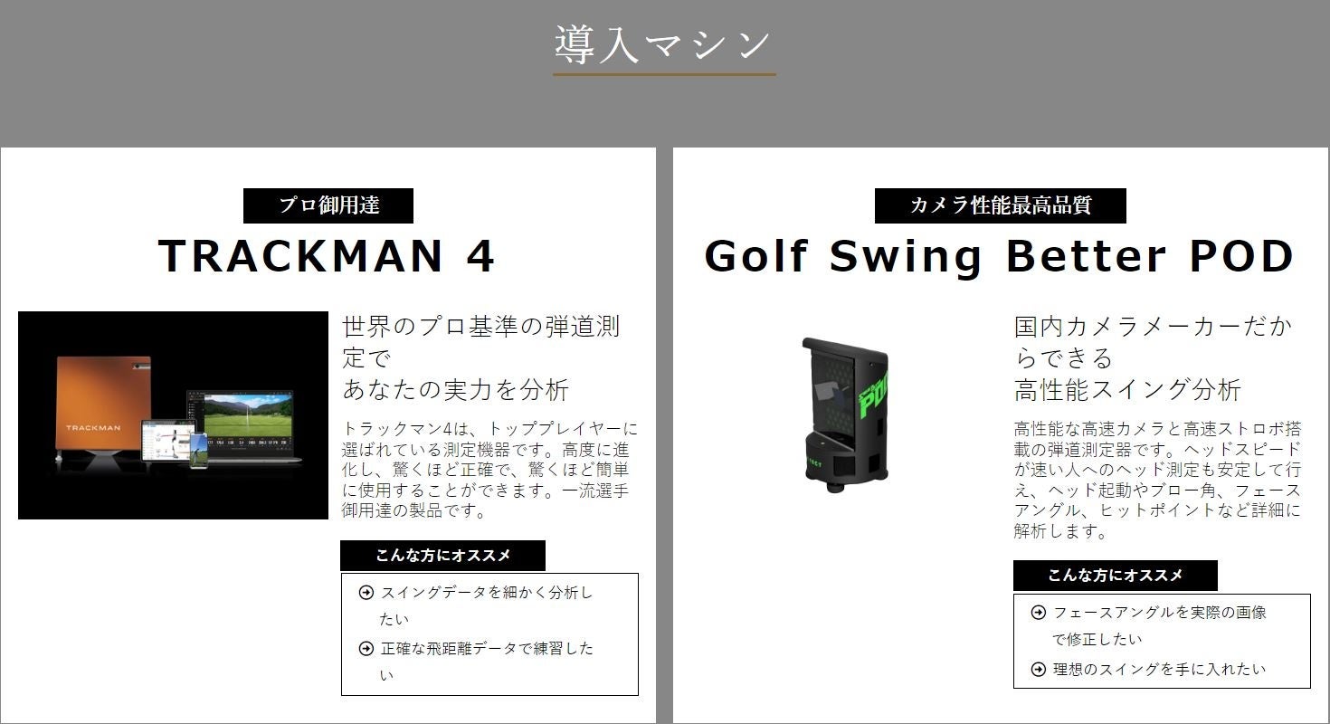 人気のTRACKMANを含む2種類の最先端シミュレーターマシンを導入予定。あなたの目標やその日の気分に合わせて最適なマシンを活用し楽しく最短でスコアアップを目指せます!