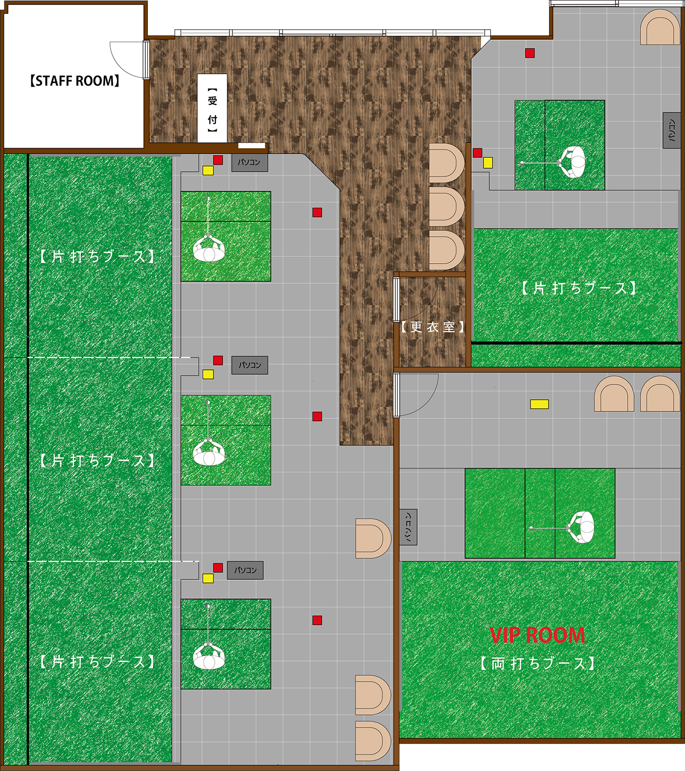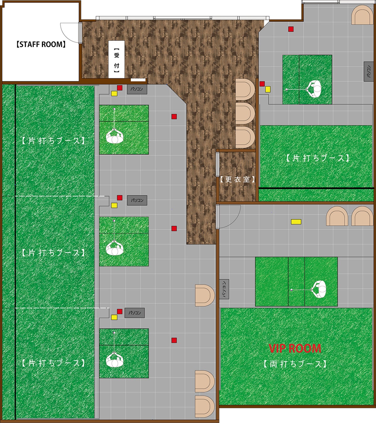 より多くのお客様に快適にご利用いただけるように県内最大級の打席数を確保。待ち時間や隣で打っている人が気になるというストレスの最小化を実現。