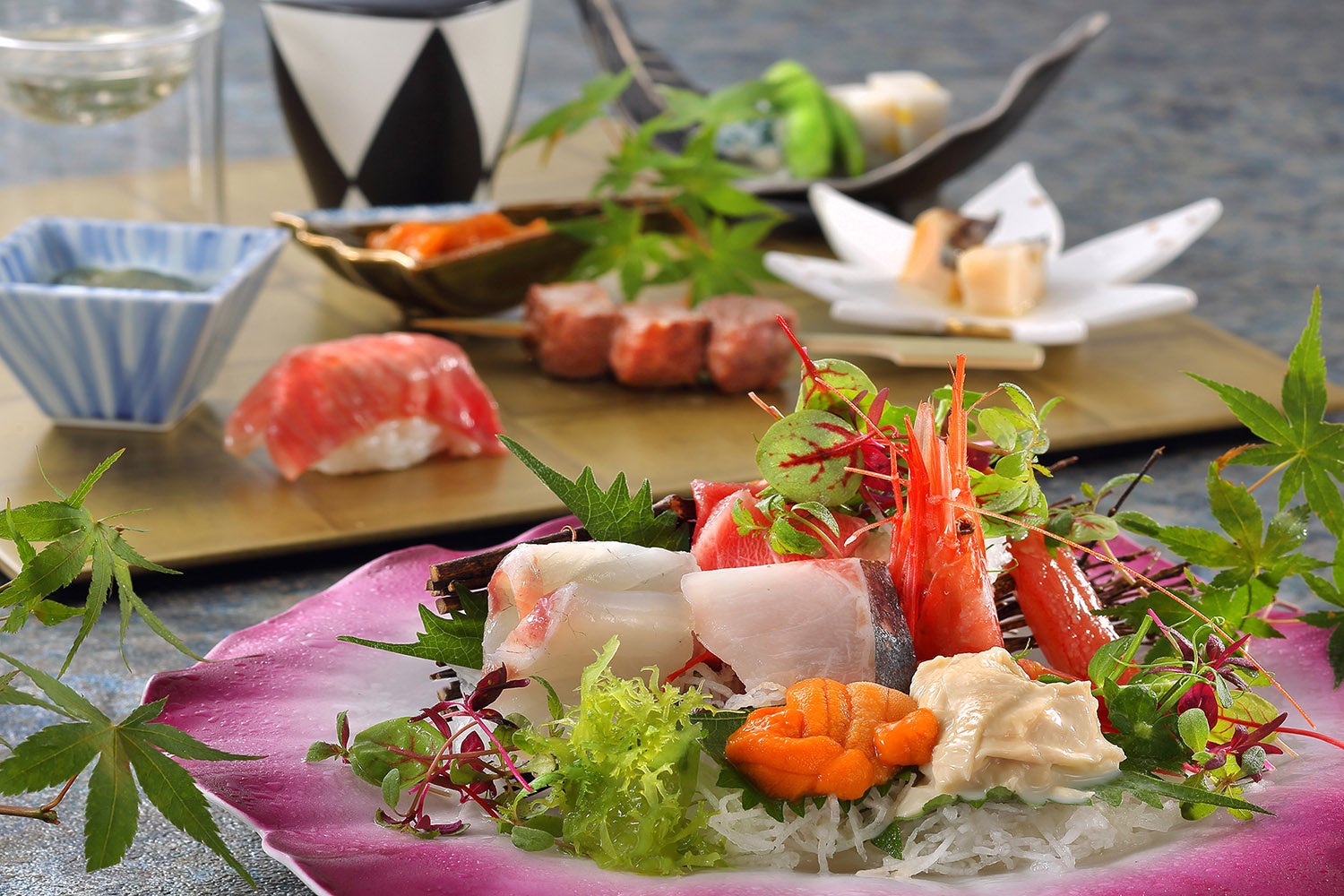 石川県から毎日直送される鮮度抜群の海鮮によるお造りをはじめ、『紅葉 KUREHA』でご用意する食材や、お料理はいずれも自家菜園で育てた旬の高原野菜やA5ランクのとちぎ和牛など、当地のブランド素材による自慢の逸品です。楽しい旅のひとときに、味わいでも想い出を添える贅沢な季節との出会いをご堪能くださいませ。
