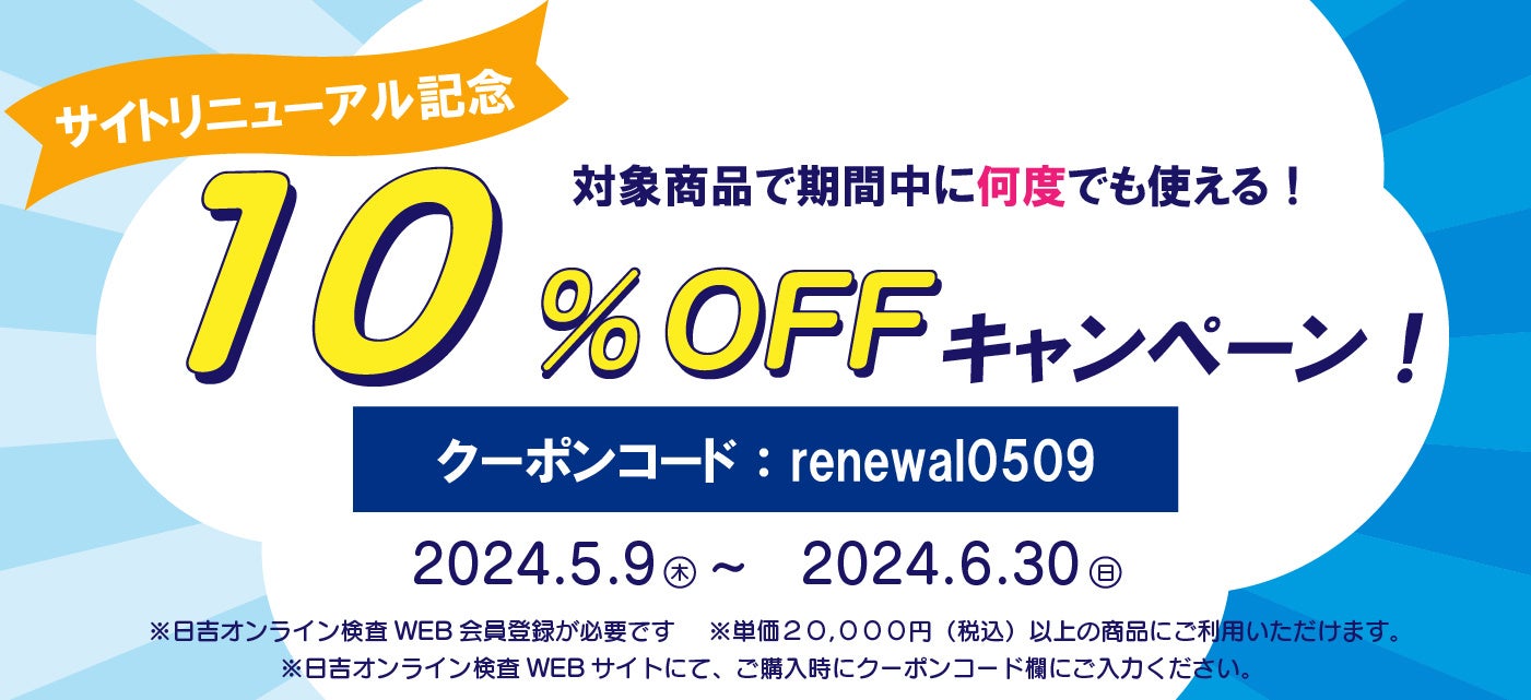 日頃の感謝の気持ちを込め、分析検査商品※が10%OFFとなるキャンペーンも実施いたします。この機会にぜひサイトへお越しください。