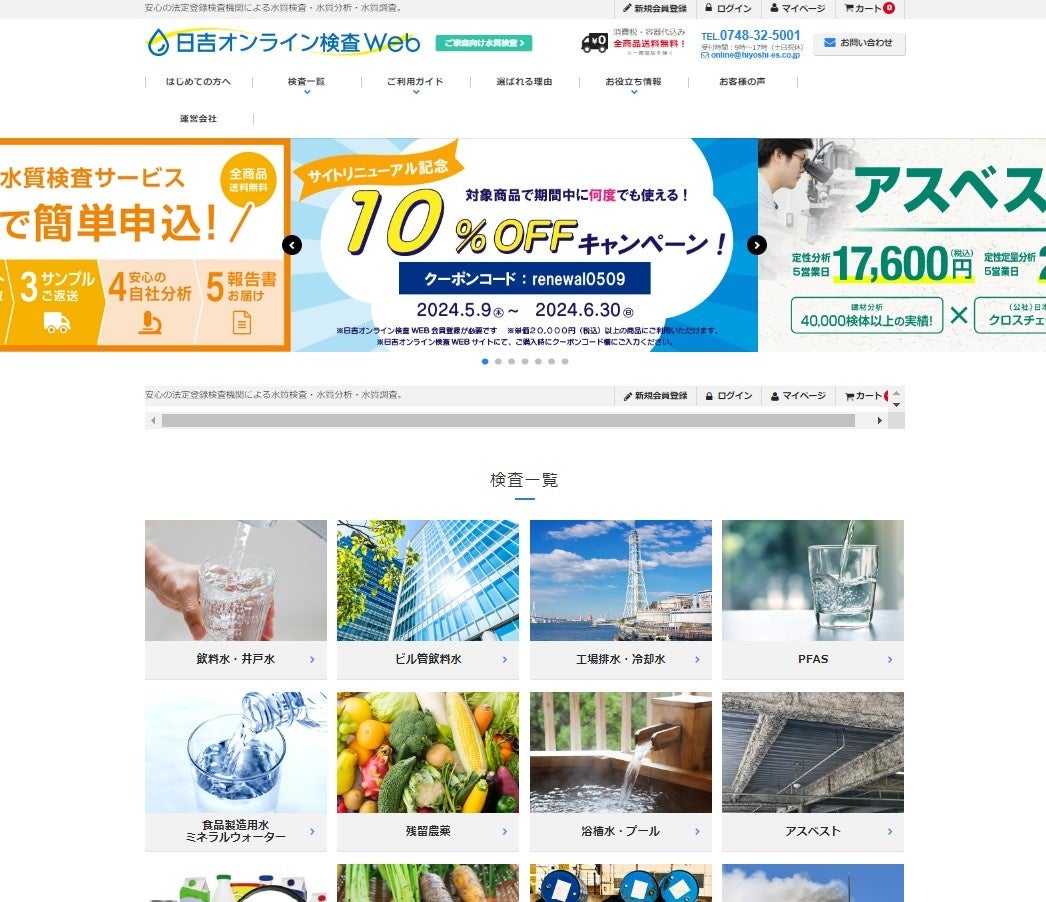 株式会社日吉(本社:滋賀県近江八幡市)は、分析検査サービスのECサイト『日吉オンライン検査Web』(https://hiyoshi-online.com/)を、2024年5月9日(木)にリニューアルいたしました。7年ぶりのリニューアルとなる今回、お客様が使い慣れたデザインは極力そのままで、ペーパーレスを考慮した電子報告書の発行、電子報告書システム『アナレポ®』の利用範囲拡大、お役立ちコラムの追加・改善など、お客様の利便性を向上いたしました。