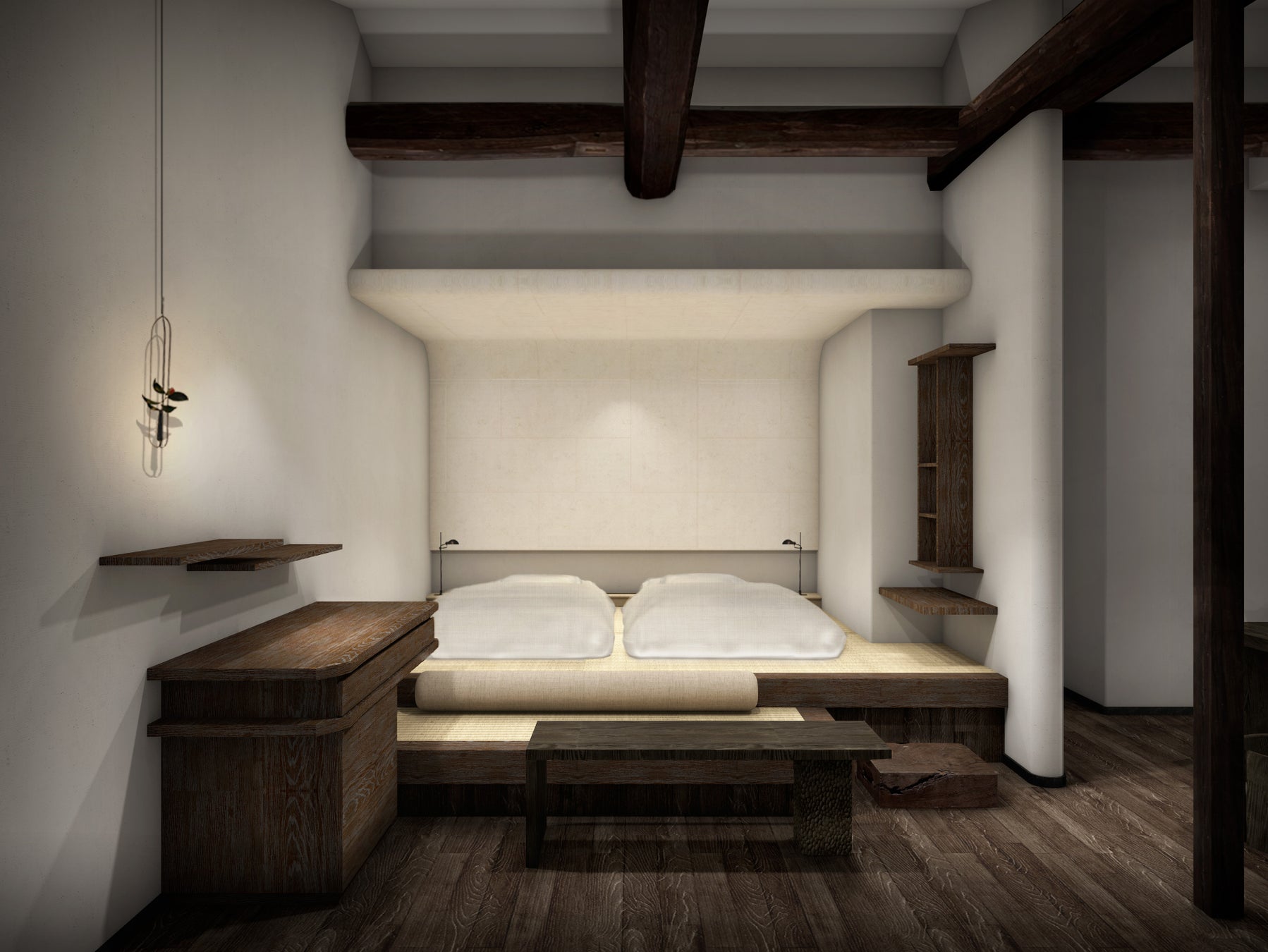 客室はスタンダードにあたる30㎡の部屋から、76㎡のスイートまで、5つの客室タイプに分かれ計13部屋を計画しています。レストランやレセプション、スイートとジュニアスイートは伝統的建造物である建物の改修・増築を行ったエリアとなり、新築エリアには倉敷の歴史や文化を尊重したデザインが施されたメゾネットの部屋が並びます。