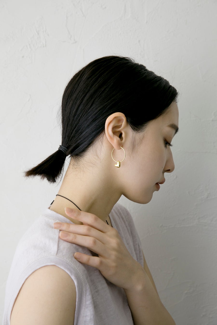 小粒なピアスは耳元をさり気なく演出してくれます。
