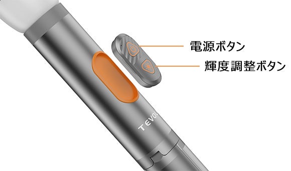 三脚スタンドを展開後、「TEVOLE」の上半分は簡単に取り外せて、懐中電灯にもなります。真っ暗のとこで物を探すときや、夜間の移動の際にも安心できます。
