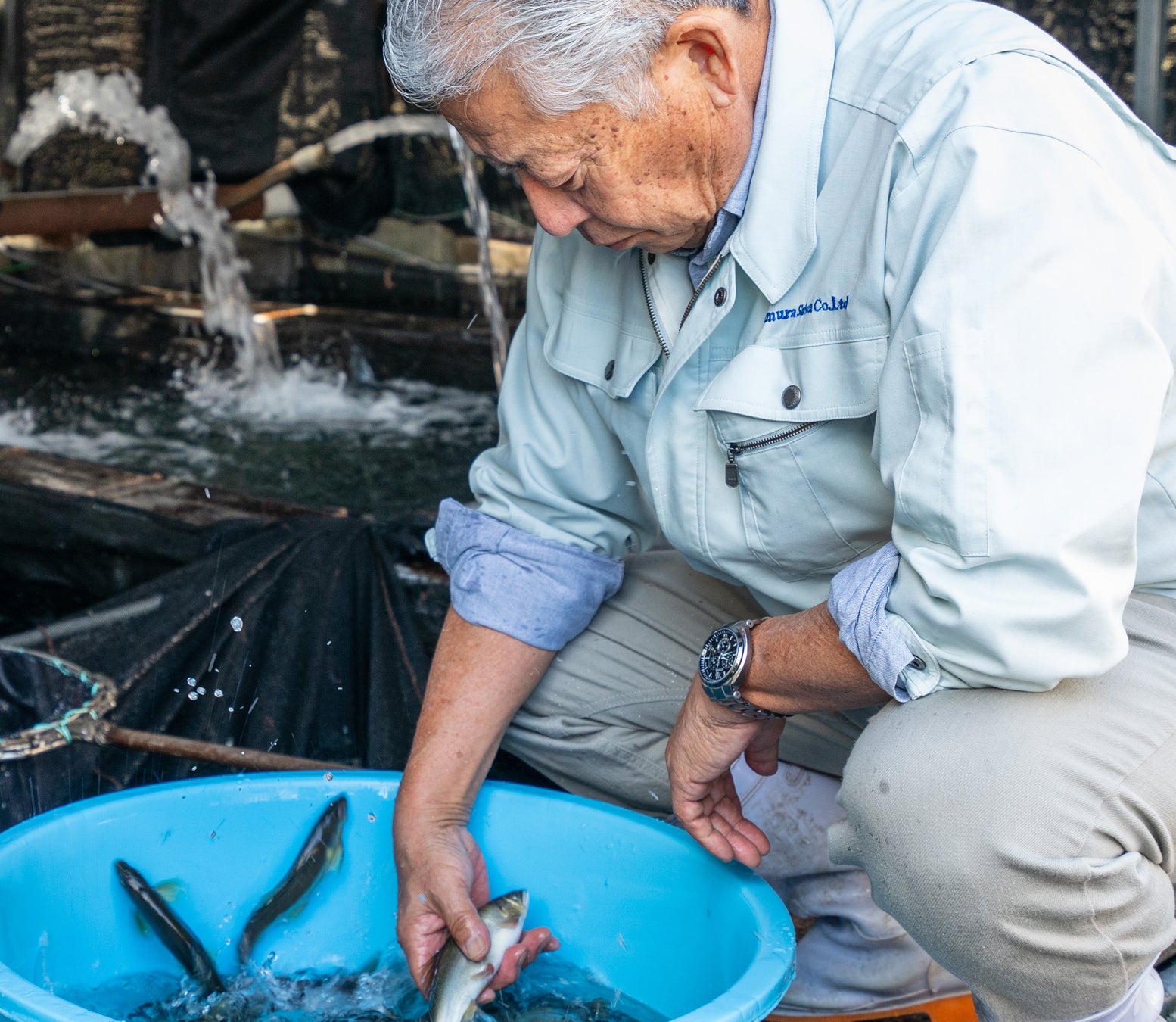 この思いを実現させるために生産者である木村水産は、唯一無二の養殖鮎である「木村鮎」ブランドを立ち上げました。日本初の鮎養殖事業者としての経験と誇りをブランド名に込めました。