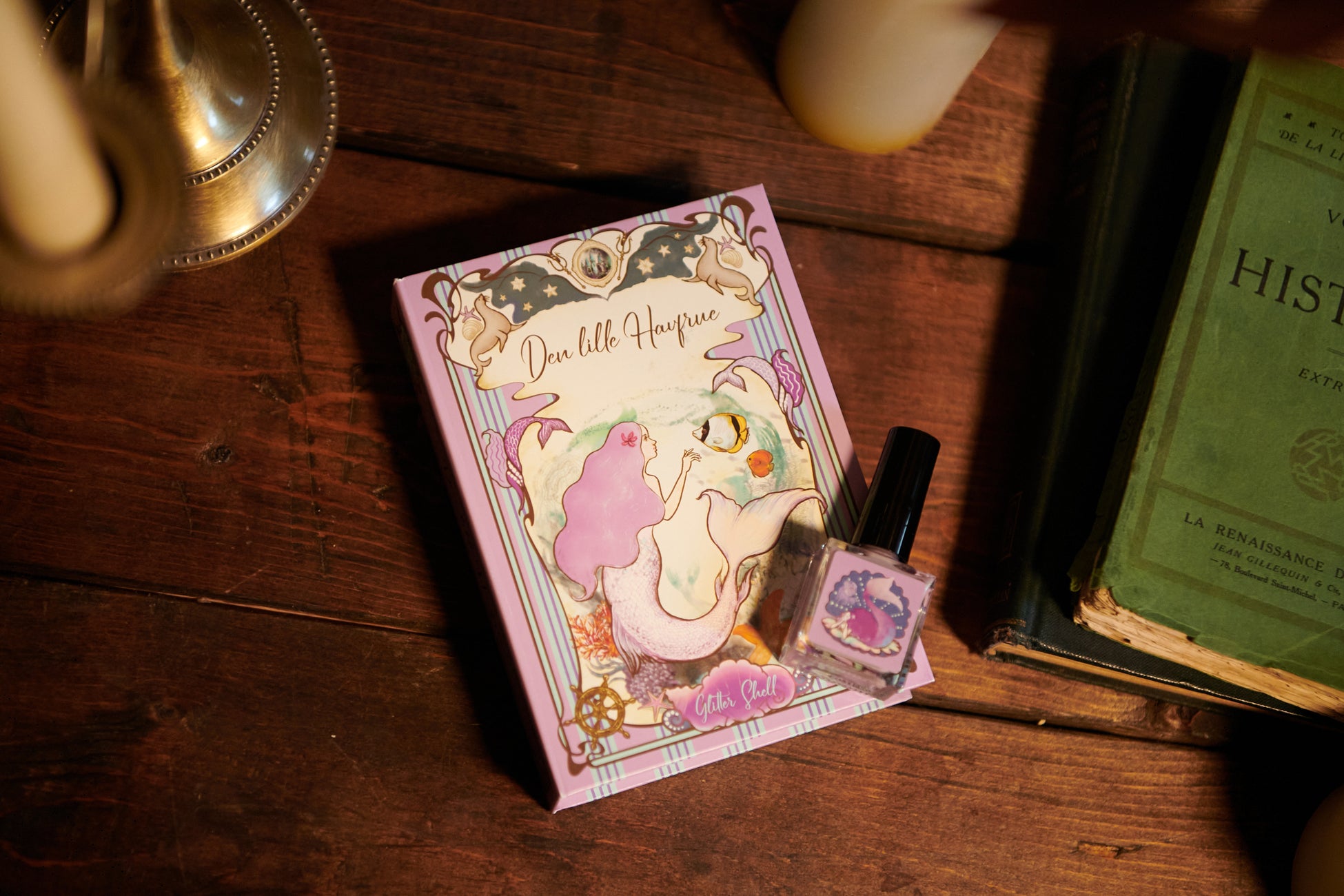 グリッターシェル - 童話人魚姫の物語からイメージされたシアーパープル。水中の光のゆらめきを再現した奥行きのある色彩。