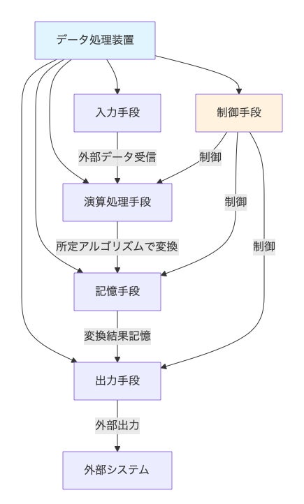 データ処理装置であって、 外部から入力されるデータを受信する入力手段と、 前記入力手段により受信されたデータを所定のアルゴリズムにより変換処理する演算処理手段と、 前記演算処理手段による変換結果を記憶する記憶手段と、 前記記憶手段に記憶された変換結果を外部に出力する出力手段と、 前記演算処理手段、前記記憶手段、及び前記出力手段の動作を制御する制御手段と を備えることを特徴とするデータ処理装置。