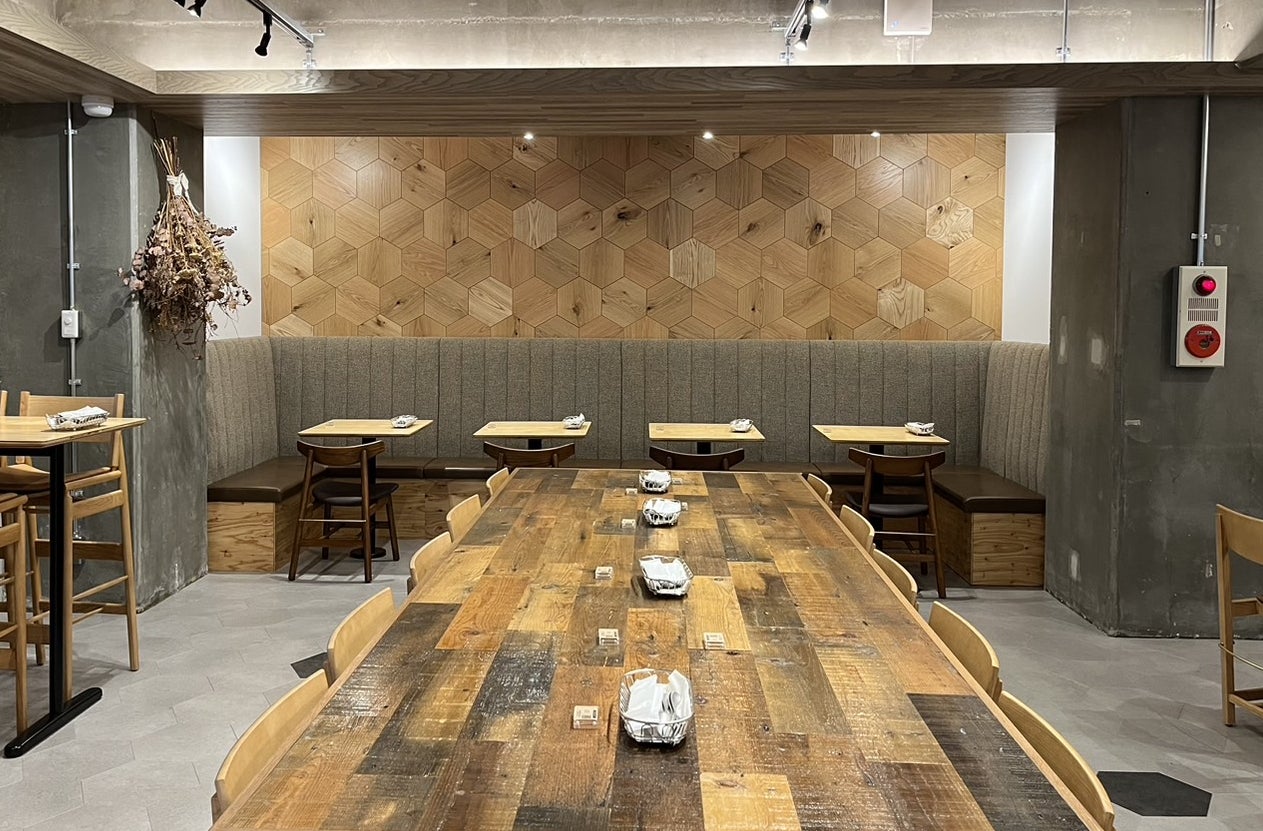 "B HONEY"では大阪梅田産のハチミツを使用したメニューだけではなく、店内のデザインもミツバチの巣穴をイメージした正六角形が多くみられます。