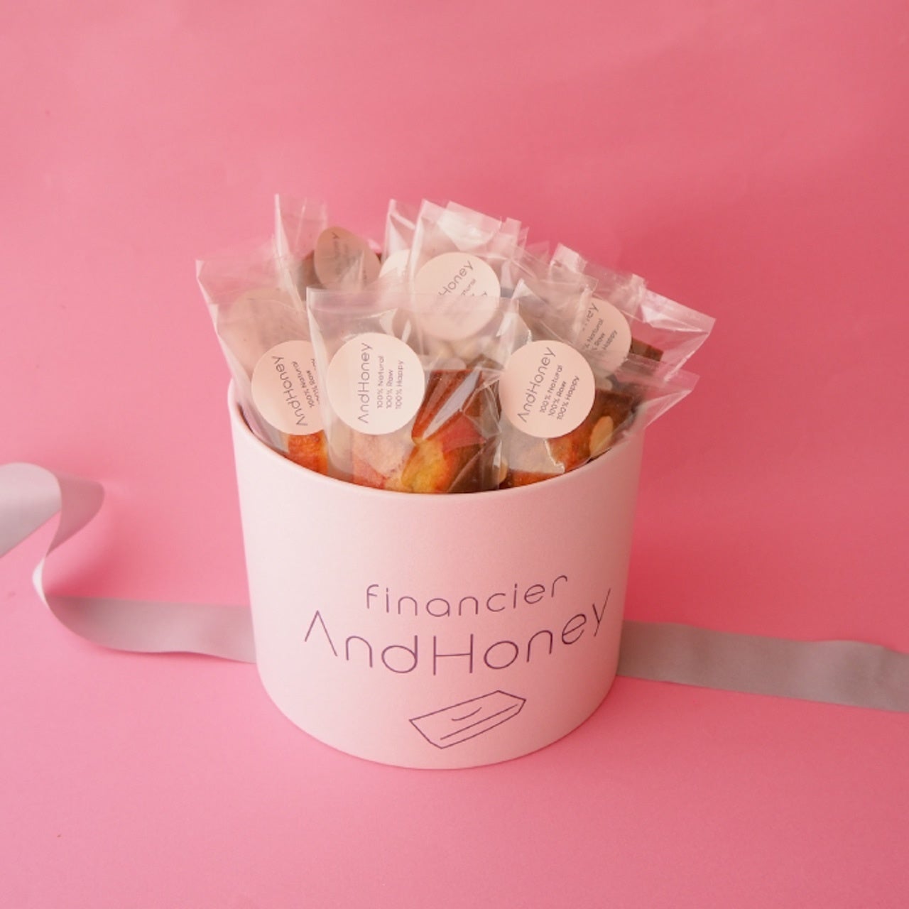 フィナンシェには究極の分量までハチミツを配合し、天然素材そのものの上品な香りとハチミツのやさしい甘さが感じられるのが特徴です。ご自身用にお好きなものを1つからでも、大切な方へのプレゼント用にも最適です。ぜひお気に入りを見つけてください。