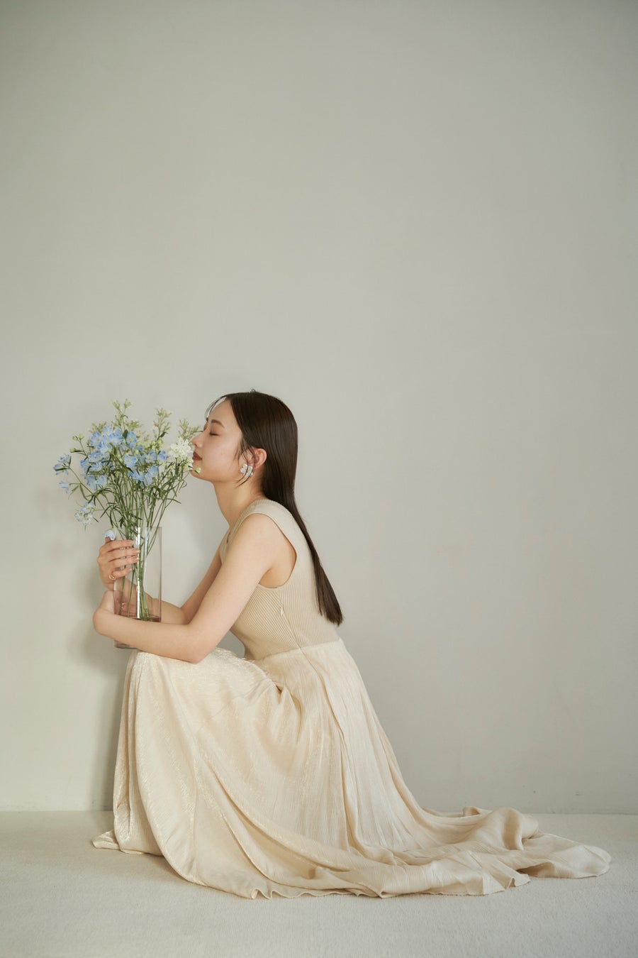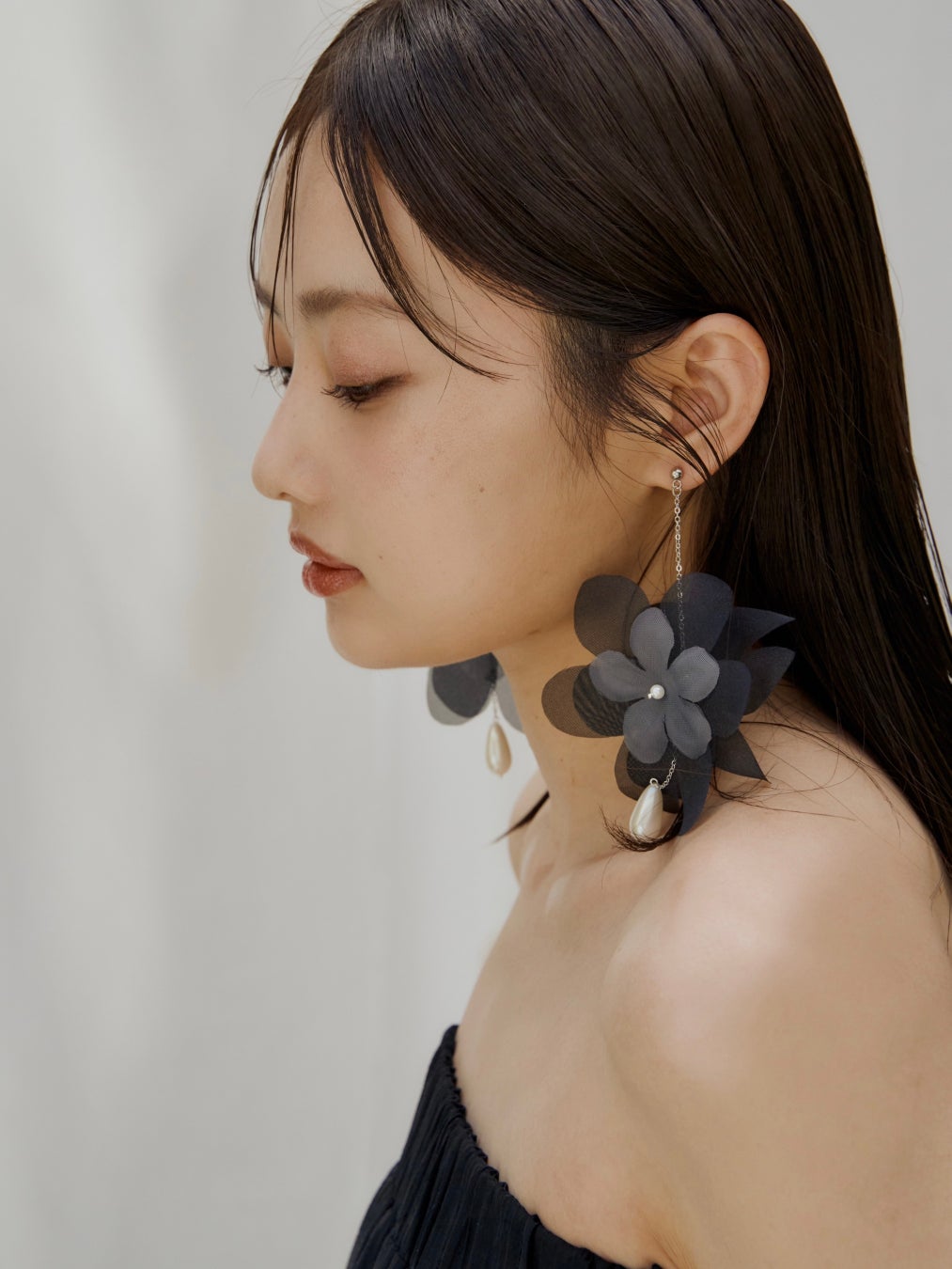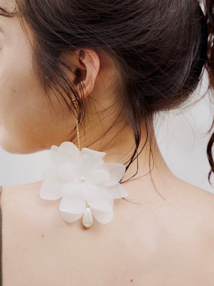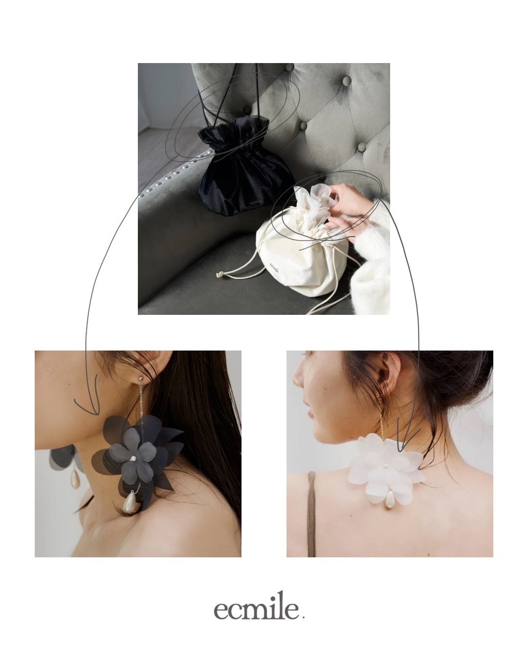 昨年発売し、ご好評をいただいております、“ORGANDY DRAWSTRING BAG”の生産の際に生まれる残布(布の切れ端)を使用し、ORIGINAL FLOWER PIERCEが登場。