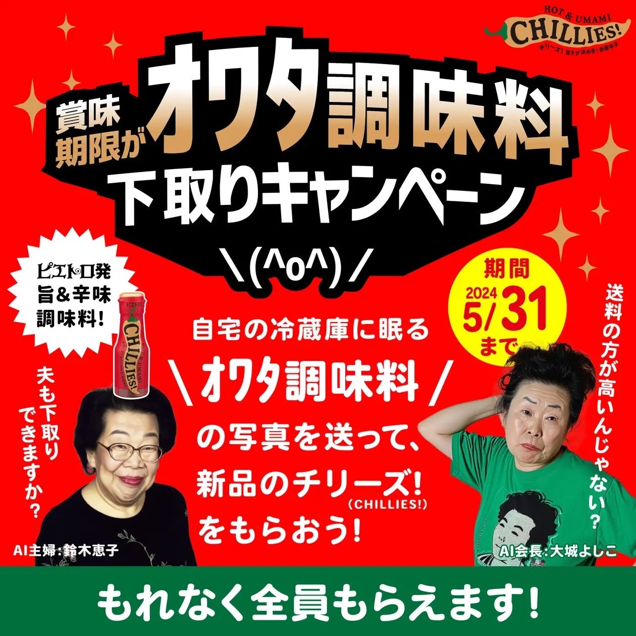 ★「オワタ調味料下取りキャンペーン」終了のお詫びとお知らせ:https://karameter.com/2024/04/09/owata-campaign