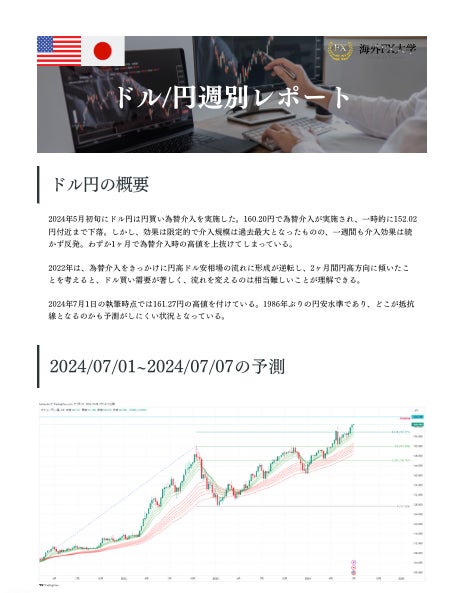 個人投資家の金融リテラシー向上のためにサービスを提供するフィンテック企業であるファイナンスジャパン合同会社(https://financejapan.co.jp/)は、国際テクニカルアナリスト監修のもと、ドル円週間テクニカルレポートを公開しました。