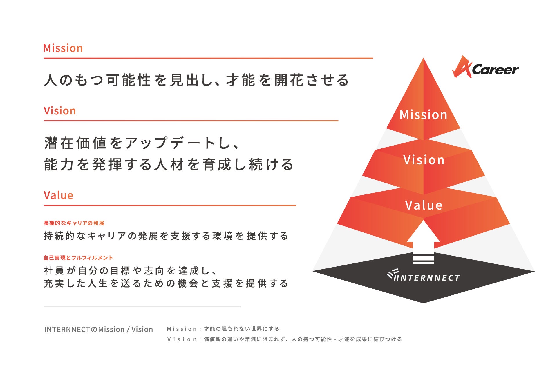 A Careerは、Internnectグループのミッションに内包される「人の可能性を”発掘し”、才能を”育てる”」というプロセスを実現する組織です。
