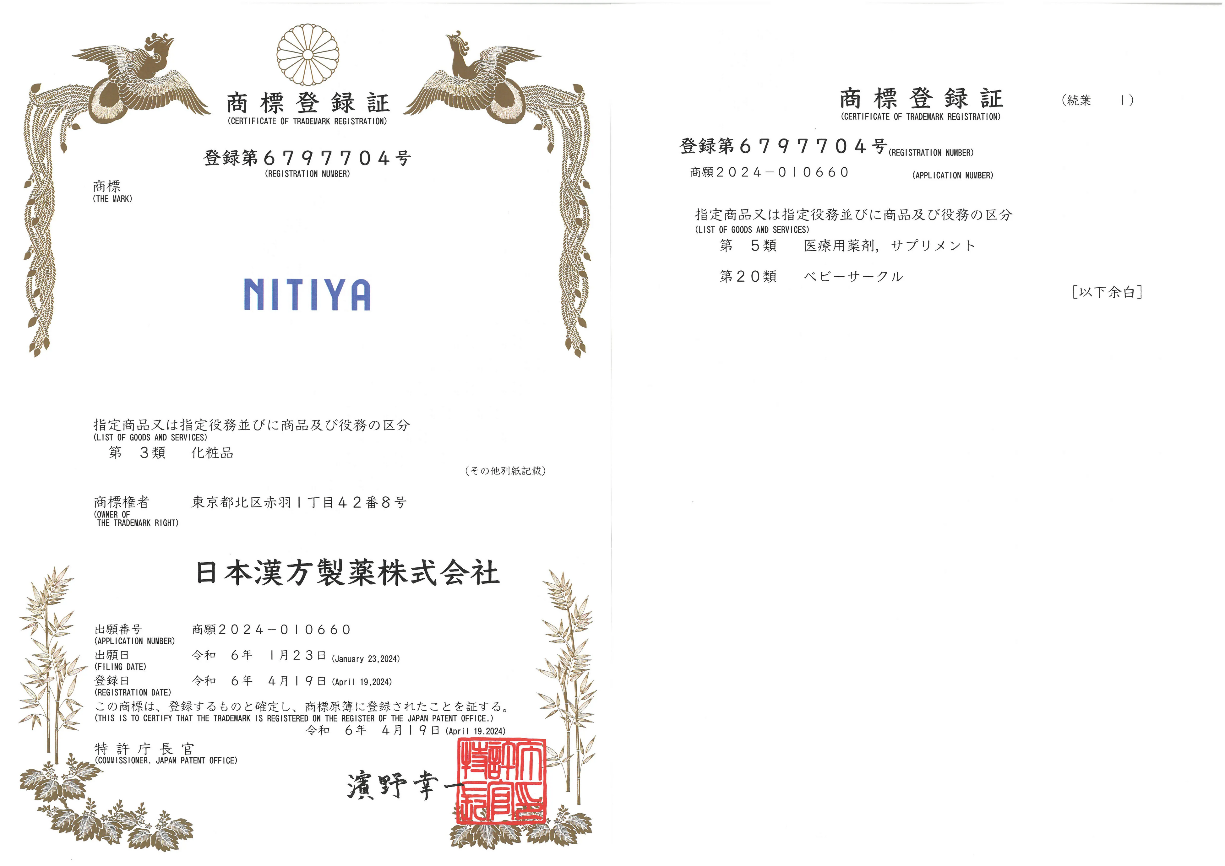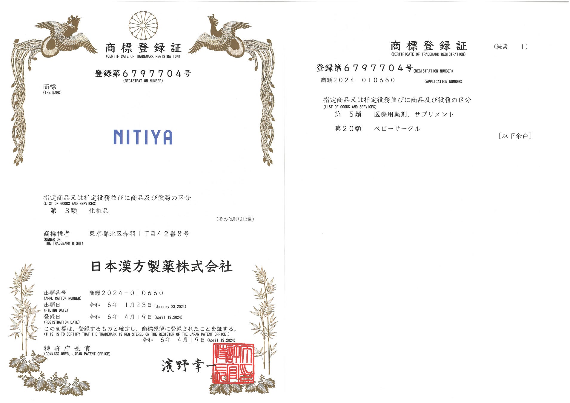 この度当社が出願しておりました「NITIYA」について、特許庁より登録商標として正式に登録されましたのでご報告申し上げます。