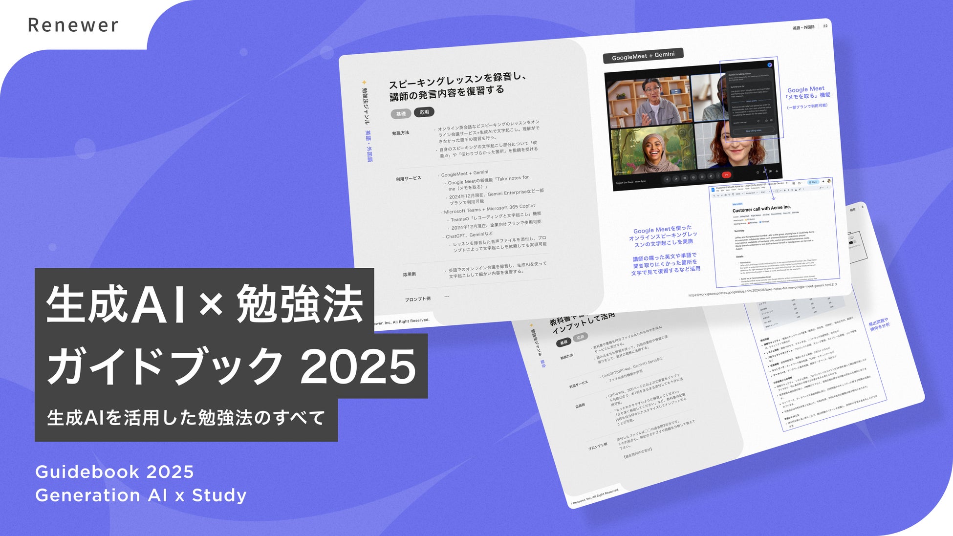 Renewer、今年の学習を成功させる生成AI活用Tips集「生成AI × 勉強法ガイドブック 2025」を公開